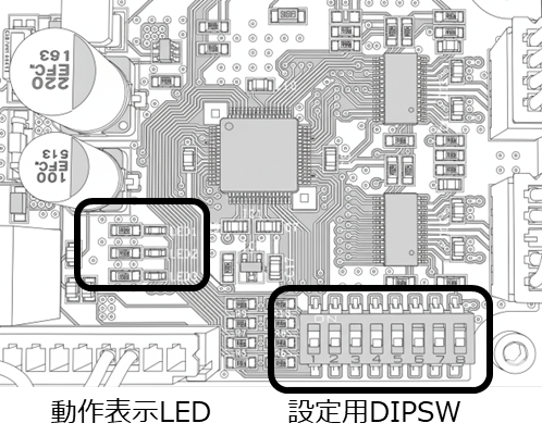 DIPSWなどの設定・モーター・レーザー制御・温度・モーター動作確認などの動作を確認します。